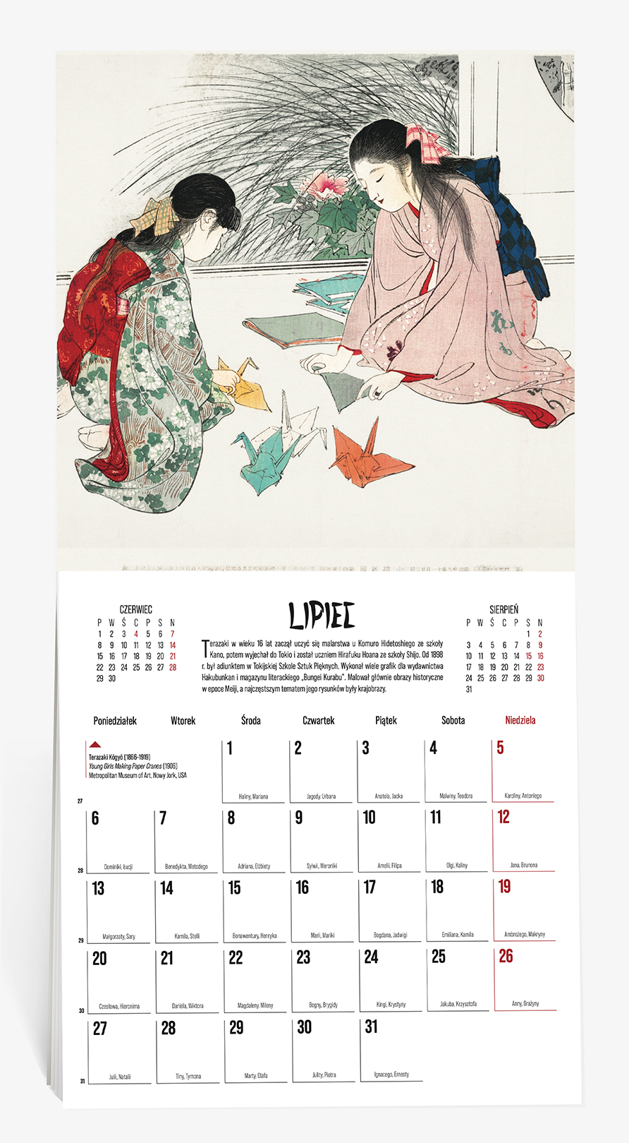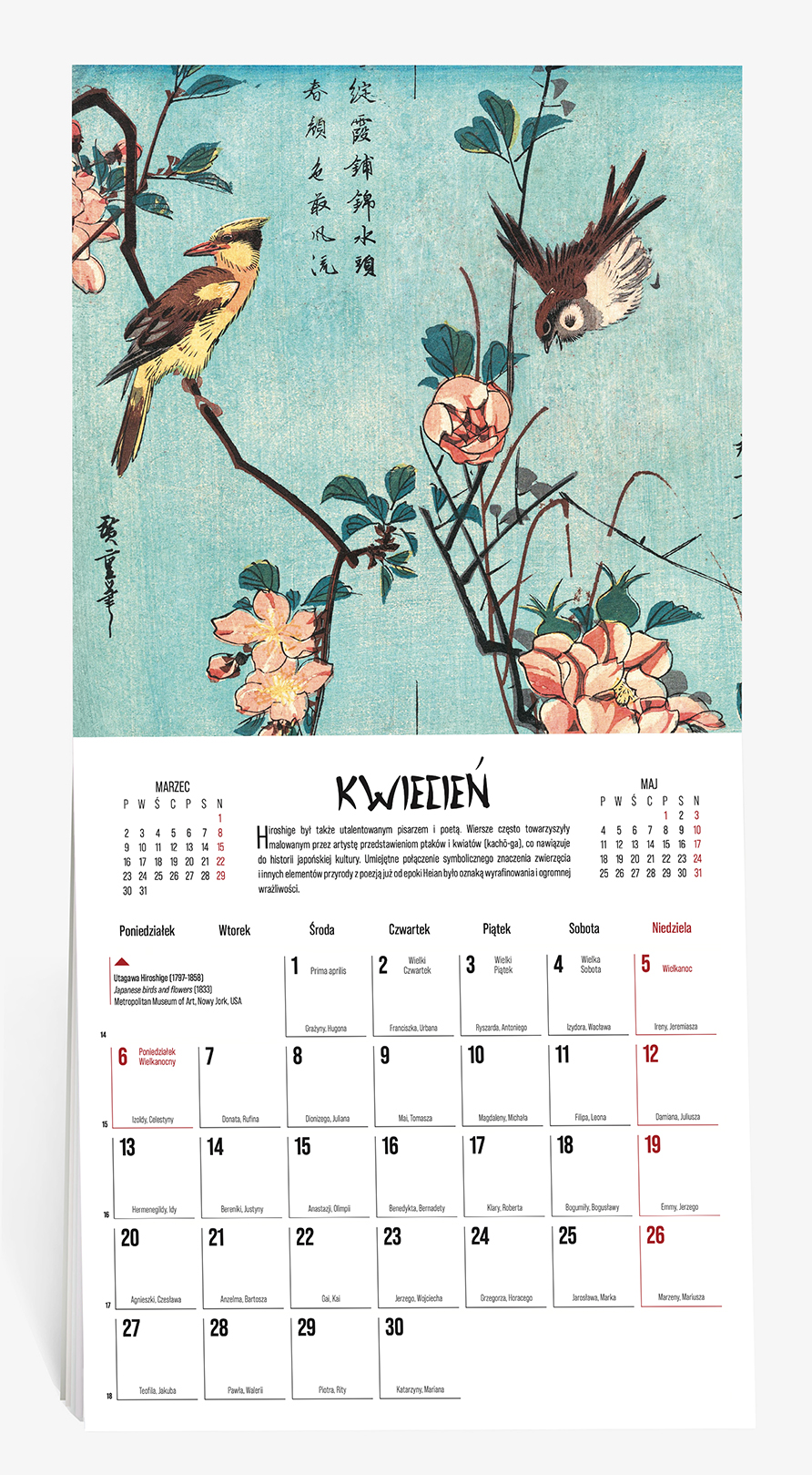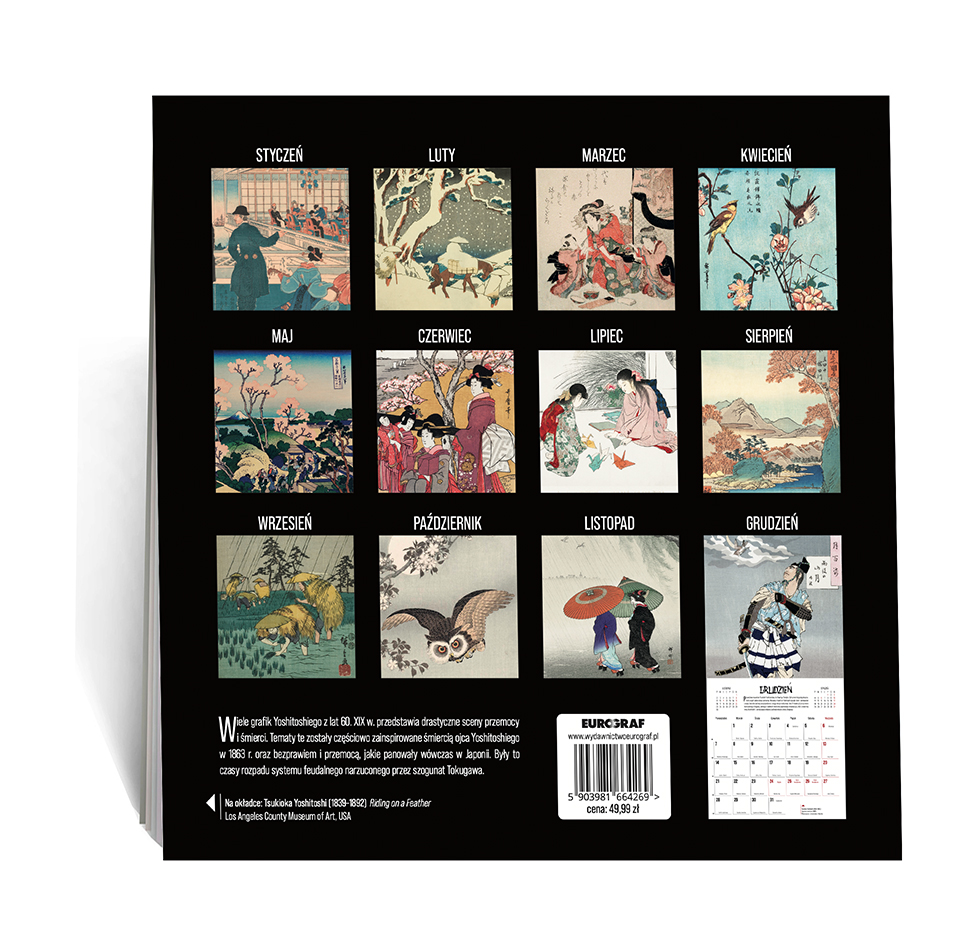 Kalendarz ścienny 2026 Japonia z grafikami w stylu ukiyo-e – tradycyjnego japońskiego drzeworytu.