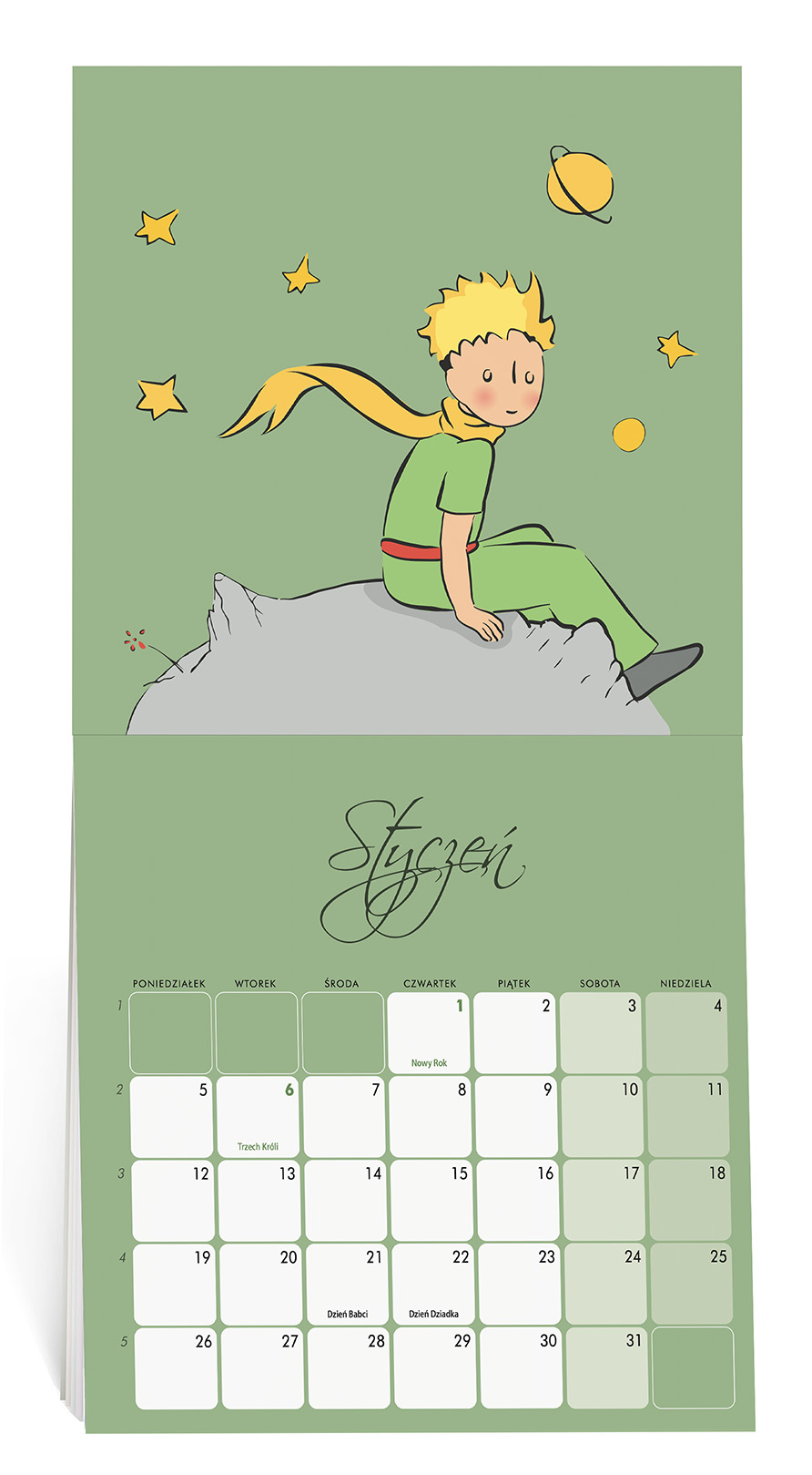 Mały Książę kalendarz ścienny miesięczny.